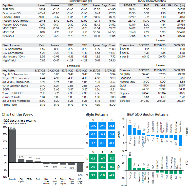 Thought of the Week: Source: Bloomberg, FactSet, MSCI, NAREIT, FTSE Russell, Standard and Poor's, J.P. Morgan Asset Management. Data are as of March 27, 2026.