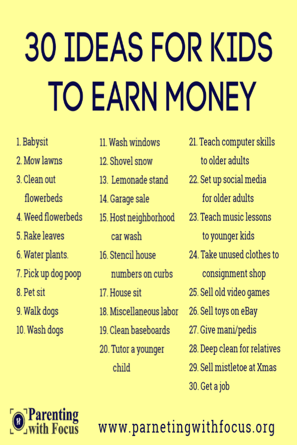 - Here is a great guide on ways kids can earn money
